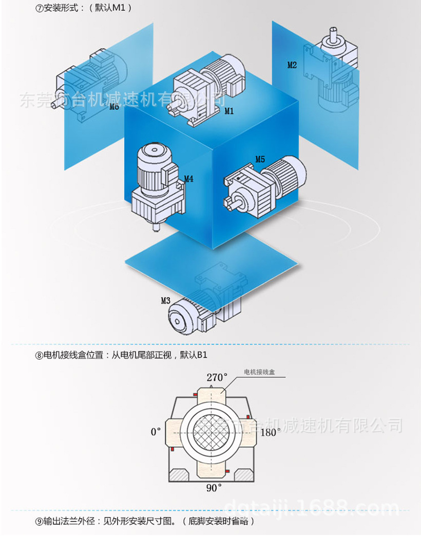 2、安裝方式:底座安裝、空心軸安裝、法蘭安裝、扭力臂安裝、小法蘭安裝。
