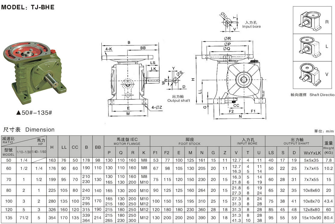 臺(tái)機(jī)減速機(jī)生產(chǎn)廠家制造銷售的WPDZ底座安裝蝸輪減速機(jī)(帶輸入軸蝸輪減速機(jī))的是同一個(gè)產(chǎn)品,只是叫法不同,采用進(jìn)口原材料,臺(tái)灣生產(chǎn)工藝。WPDZ底座安裝蝸輪減速機(jī)(帶輸入軸蝸輪減速機(jī))是一種動(dòng)力傳達(dá)機(jī)構(gòu),利用齒輪的速度轉(zhuǎn)換器,將電機(jī)(馬達(dá))的回轉(zhuǎn)數(shù)減速到所要的回轉(zhuǎn)數(shù),并得到較大轉(zhuǎn)矩的機(jī)構(gòu)。在用于傳遞動(dòng)力與運(yùn)動(dòng)的機(jī)構(gòu)中,減速機(jī)的應(yīng)用范圍相當(dāng)廣泛。