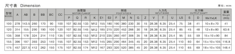 蝸輪蝸桿減速機型號大全,蝸輪蝸桿減速機尺寸圖紙基本結(jié)構(gòu)主要由傳動零件蝸輪蝸桿、軸、軸承、箱體及其附件所構(gòu)成。WP系列蝸輪蝸桿減速機可分為有三大基本結(jié)構(gòu)部:箱體、蝸輪蝸桿、軸承與軸組合。箱體是WP系列蝸輪蝸桿減速機中所有配件的基座,是支承固定軸系部件、保證傳動配件正確相對位置并支撐作用在WP系列蝸輪蝸桿減速機上荷載的重要配件。WP系列蝸輪蝸桿減速機主要作用傳遞兩交錯軸之間的運動和動力,軸承與軸主要作用是動力傳遞、運轉(zhuǎn)并提有效率。