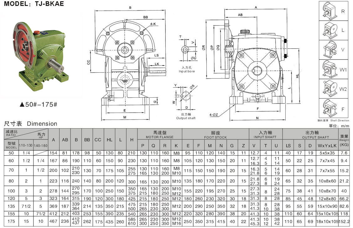 5、輸出、輸入軸位置方向有輸入軸在下及在上;輸出軸向上及向下;輸入軸向上及向下。