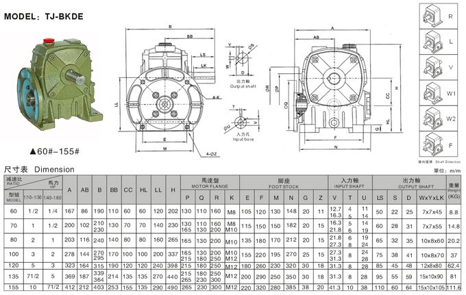 WP蝸輪蝸桿減速機類別:WP蝸輪蝸桿減速機