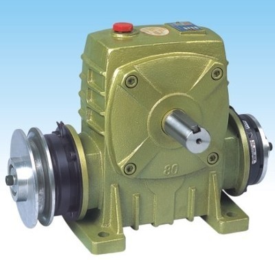 離合剎車減速機(jī)組合的工作原理是在電磁離合器的輸入端裝置雙皮帶輪,通過皮帶輪與驅(qū)動(dòng)部分連接旋轉(zhuǎn)。通電時(shí),把旋轉(zhuǎn)傳遞給蝸輪蝸桿軸,從而實(shí)現(xiàn)減速機(jī)輸出軸的旋轉(zhuǎn)。當(dāng)把電磁離合器的電流切斷時(shí),另一端的電磁制動(dòng)器通電,輸出軸就會(huì)停止運(yùn)轉(zhuǎn)。